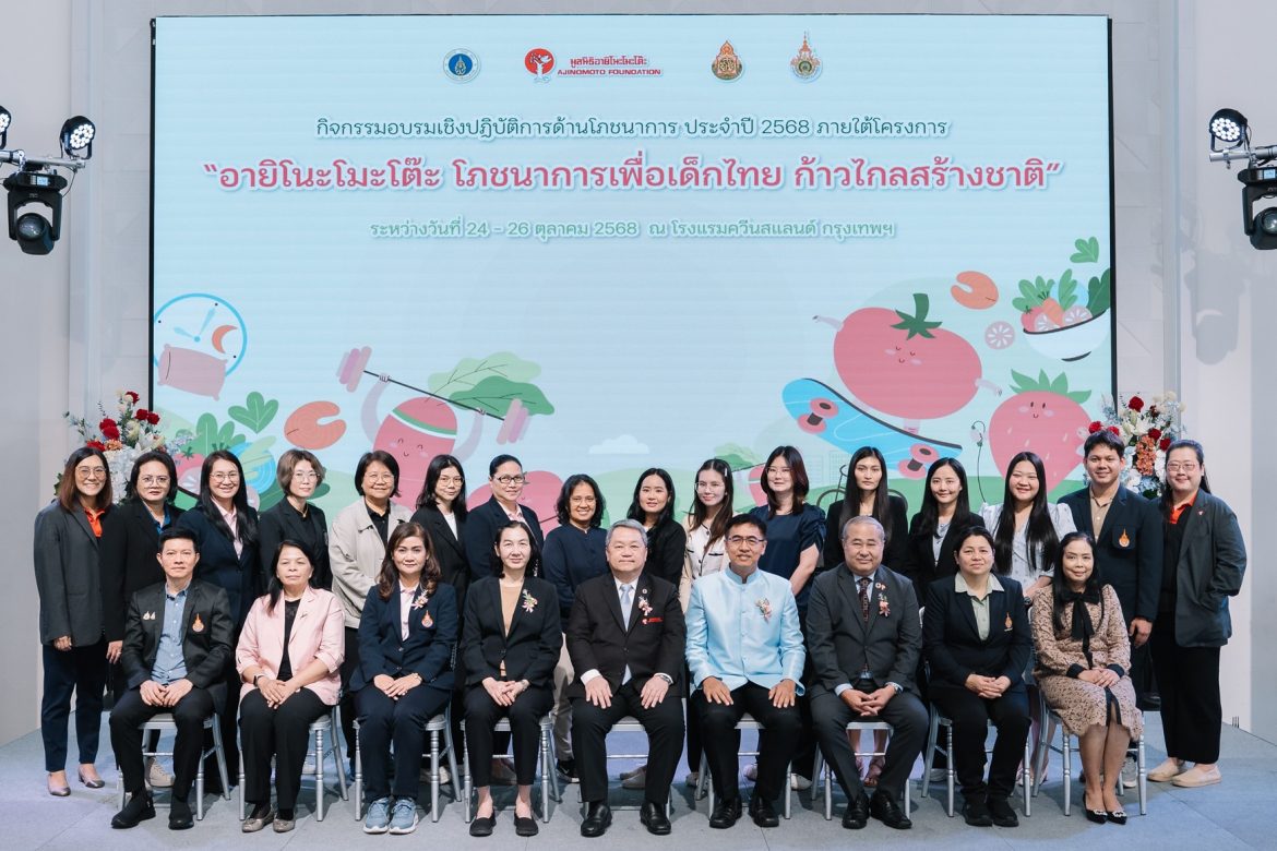 มูลนิธิอายิโนะโมะโต๊ะ ร่วมกับ สำนักงานคณะกรรมการการศึกษาขั้นพื้นฐาน (สพฐ.) กระทรวงศึกษาธิการ สถาบันโภชนาการ มหาวิทยาลัยมหิดล และคณะเทคโนโลยีคหกรรมศาสตร์ มหาวิทยาลัยเทคโนโลยีราชมงคลธัญบุรี จัดอบรมเชิงปฏิบัติการด้านโภชนาการ ภายใต้โครงการ “อายิโนะโมะโต๊ะ โภชนาการเพื่อเด็กไทย ก้าวไกลสร้างชาติ” ประจำปี 2568 ระหว่างวันที่ 24–26 ตุลาคม 2568 ณ โรงแรมควีนสแลนด์ กรุงเทพมหานคร