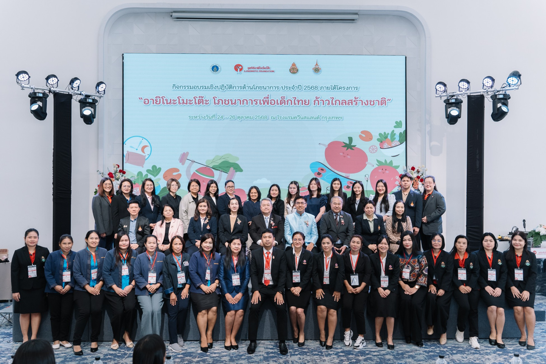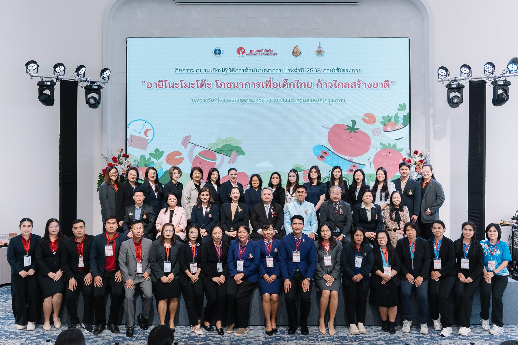 มูลนิธิอายิโนะโมะโต๊ะ ร่วมกับ สำนักงานคณะกรรมการการศึกษาขั้นพื้นฐาน (สพฐ.) กระทรวงศึกษาธิการ สถาบันโภชนาการ มหาวิทยาลัยมหิดล และคณะเทคโนโลยีคหกรรมศาสตร์ มหาวิทยาลัยเทคโนโลยีราชมงคลธัญบุรี จัดอบรมเชิงปฏิบัติการด้านโภชนาการ ภายใต้โครงการ “อายิโนะโมะโต๊ะ โภชนาการเพื่อเด็กไทย ก้าวไกลสร้างชาติ” ประจำปี 2568 ระหว่างวันที่ 24–26 ตุลาคม 2568 ณ โรงแรมควีนสแลนด์ กรุงเทพมหานคร