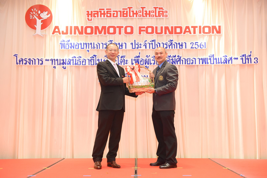 On March 22, 2019, Ajinomoto Foundation organized “the 3rd Ajinomoto Talent Scholarship” presentation ceremony led by Mr.Phichein Koosmith, Vice Chairman of Ajinomoto Foundation, together with other directors and Ms.Chayuda Kaewsaard, Director of Special Affairs of Bureau of Student development (The Office of the Higher Education Commission : OHEC), presided over the ceremony and gave 151 scholarships, worth around 9 Million Baht in total, to the students who are studying in the fields conforming to the Thailand’s business and industrial demands with outstanding academic record for student in 7 universities i.e. Chulalongkorn University, Thammasat University, Kasetsart University, Mahidol University, King Mongkul’s University, of Technology Thonburi, King Mongkul’s University of Technology North Bangkok and King Mongkul’s Institute of Technology Ladkrabang. The ceremony took place at the Makkhawan Rangsarn room, Thai Army Club, Vibhavadi Road, Bangkok.