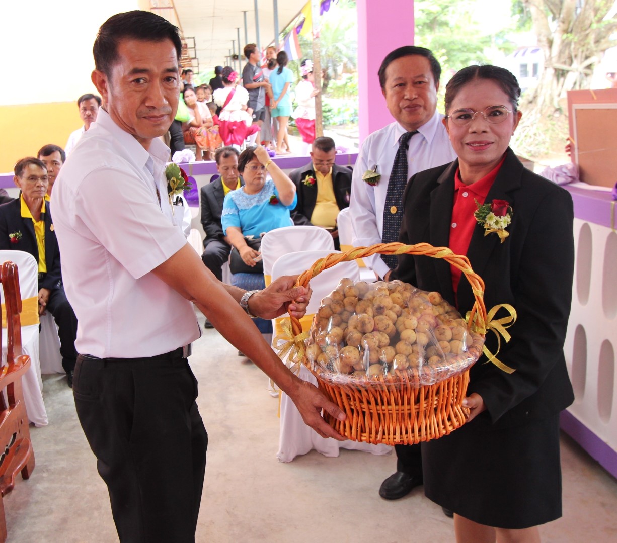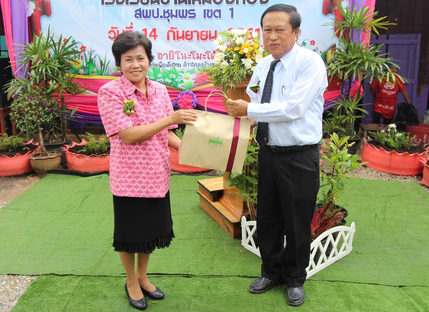 Baan Mueang Thong School, Amphoe Tha Sae, Chumpon Province. There is a canteen in the school but existing canteen is too old and unsafe for using. Ajinomoto Foundation decided to support fund for canteen construction under the project “Ajinomoto for Thais : Better Nutrition, Stronger Nation” Project in 2017, with a budget of 1,000,000 Baht. The canteen construction was completed as a no.84 under the project. The delivering ceremony was conducted on September 14, 2018 led by by Mr.Suradech Thiaphairat, Director and Deputy and Secretary-General of Ajinomoto Foundation to deliver this canteen and honored by Mr. Wirot Thepphithak, District Chief of Tha Sae